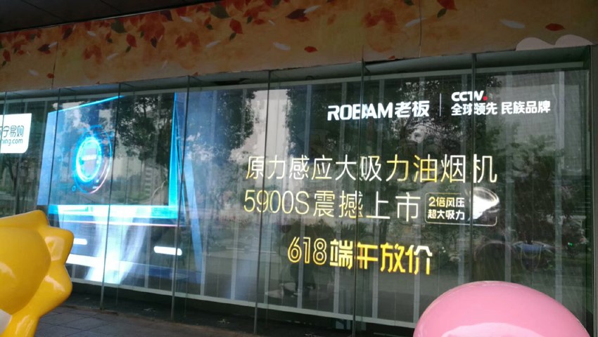 2018年5月,我公司與蘇甯雲商集團股份有限公司合作,安裝完成蘇甯生活廣場上海五角場試點一塊面積30平方米的P3.9*7.8規格的LED透明屏。